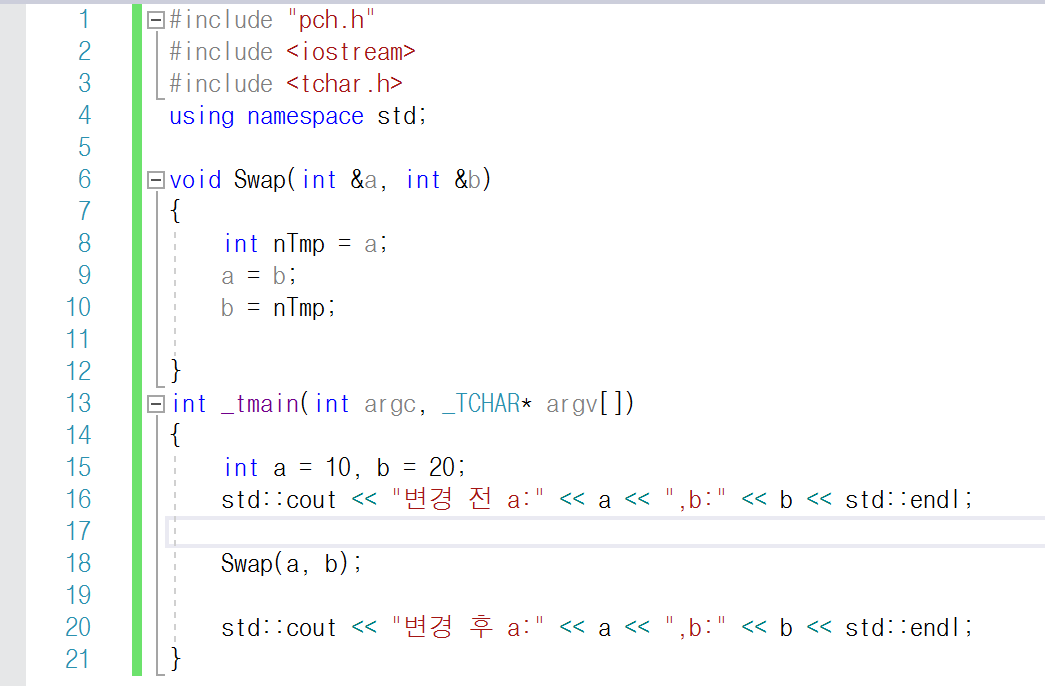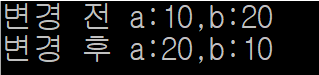 std::cout << "변경 후 a:" << a << ",b:" << b << std::endl;